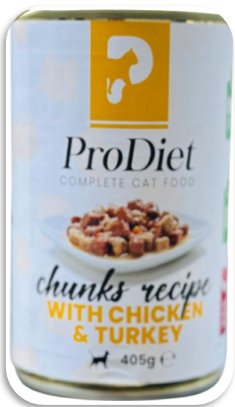 - Pro Diet Cat Chunk is available in beef, chicken, turkey, and salmon flavors.